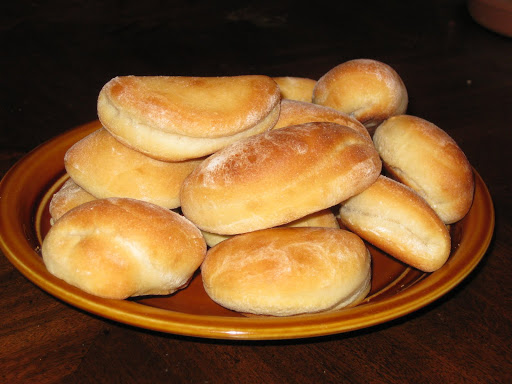 Next were the rolls. These are a nice crusty roll that I formed into a small crescent moon shape. But these are not butter crescent style rolls. This makes about 2.5 dozen rolls depending on size. These turned out very crusty on the outside with a lovely soft creamy inside. Perfect for butter and jam. Or what I did was dip it in the wine sauce. I think I ate 4 of these little guys before I could stop.