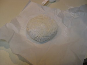 Then lightly knead 5 or 6 times. When you do this fold the dough over itself to make nice layers. Wrap in paper or plastic wrap and let rest in the ‘fridge for about 10 minutes.