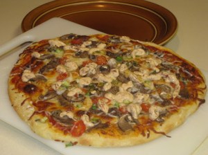 I had this pizza for the first time abut 5 years ago, and it was awesome. I remember the first time I had this, I woke up in the middle of the nite and snarfed down the leftover under the cover or darkness so I didnt have to share any 🙂 My two favorite food groups combined, Pizza and Steak. Heaven on dough 🙂 Its the chipotle spiced sour cream on top that makes this pie stand out. Spicy and good.